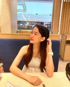 ใบหน้ารูปไข่ สวยได้รูป ตารับจมูก สัดส่วนองค์ประกอบของใบหน้ารับกันไปหมด จมูกก็โด่ง มีคุณแม่หลายคนในที่นี้นั้นโทรมหลังคลอด แต่ขอบอกเลยว่าเธอคนไม่เป็นอย่างนั้น เพราะเธอยังสวย เป๊ะ ดีไม่ดี สวยกว่าตอนยังมีน้องอีกด้วย
